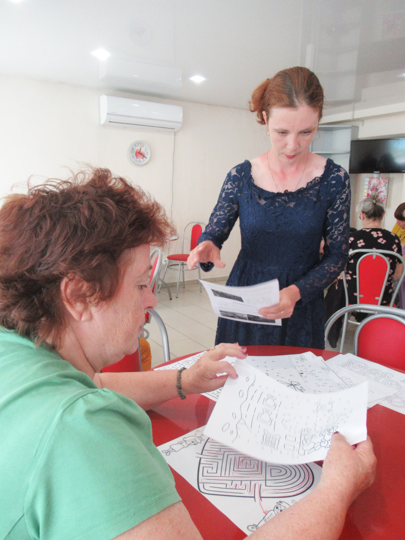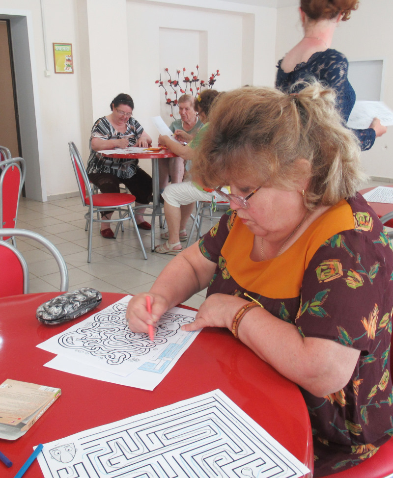 Развитие и поддержка зрительно-моторной координации важно для каждого человека. Есть много разных способов и методов, которые объединяют зрительное восприятие, мелкая моторика и зрительно-пространственная ориентация. Сегодня психолог познакомил отдыхающих отделения дневного пребывания с двумя способами развития зрительно-моторной координации. Каждый участник бродил по своему лабиринту разума и создавал картину по точкам.