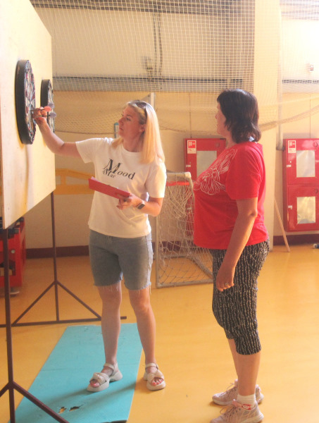 Самые активные отдыхающие отделения дневного пребывания ГБУ «ЦСОГПВИИ Лысковского района» всегда с большим удовольствием посещают спортивно-оздоровительный комплекс «Олимп» нашего города. Каждую среду их ждёт тренажёрный зал, оздоровительная гимнастика. Под руководством инструктора-методиста по адаптивной физической культуре Екатерины Максимовой сегодня прошли соревнования по метанию дротиков в мишень и стрельбе из пневматического электронного оружия.