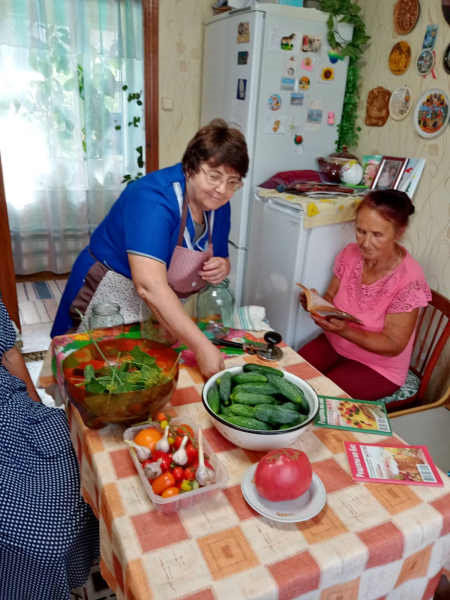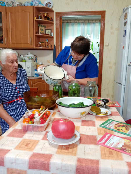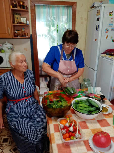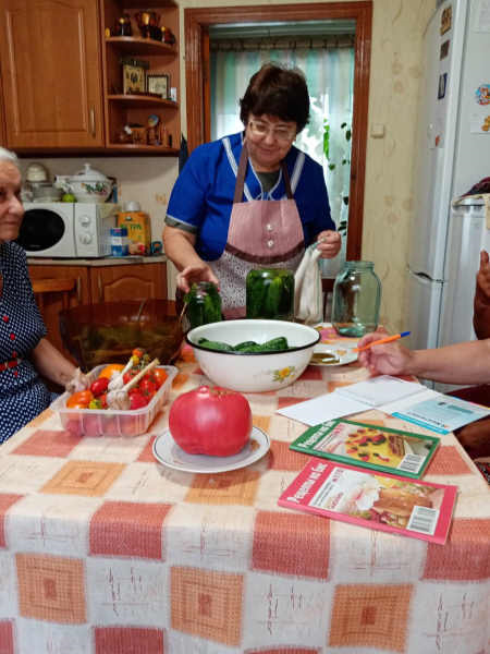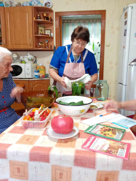 Лето – время готовить запасы на зиму. Овощные и фруктовые консервы, приготовленные своими руками – лучший «витамин» для долгих холодов и морозов. Как приятно открыть зимой баночку душистого варенья или хрустящих огурчиков и вдохнуть аромат лета! В сборе и консервировании овощей и фруктов гражданам, состоящим на надомном обслуживании, помогают социальные работники. Взамен, хозяйки с многолетним опытом спешат поделиться с помощниками своими фирменными рецептами разносолов.