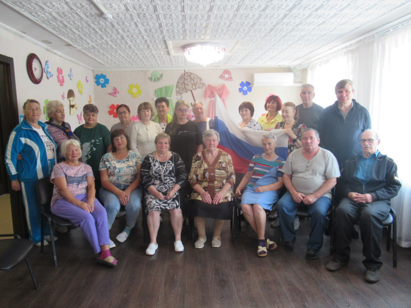 С получателями социальных услуг в отделении дневного пребывания, состоялся экскурс в историю «В символах страны – история Отечества». Участники мероприятия познакомились с историей российского флага, узнали интересные факты его происхождения, еще раз вспомнили значение каждого цвета триколора.