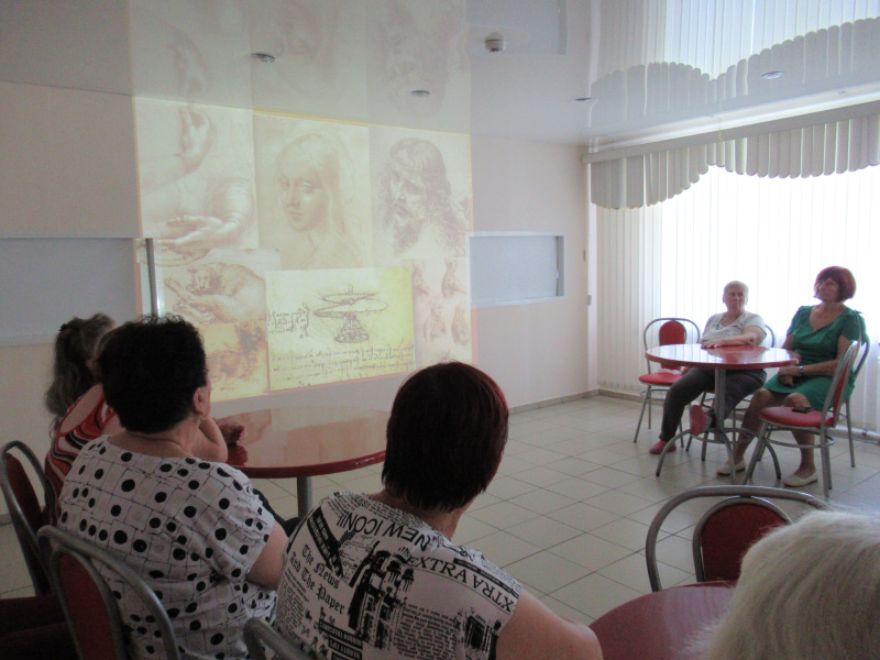 Леонардо да Винчи – величайший итальянский художник, но ещё и гениальный изобретатель, мыслитель, ученый. О жизни и творчестве гения Ренессанса рассказала сотрудник Центральной библиотеки Е.И. Маршева отдыхающим отделения дневного пребывания ГБУ «ЦСОГПВИИ Лысковского района». Наиболее интересны были истории создания шедевров «Мона Лиза», «Тайная вечеря».