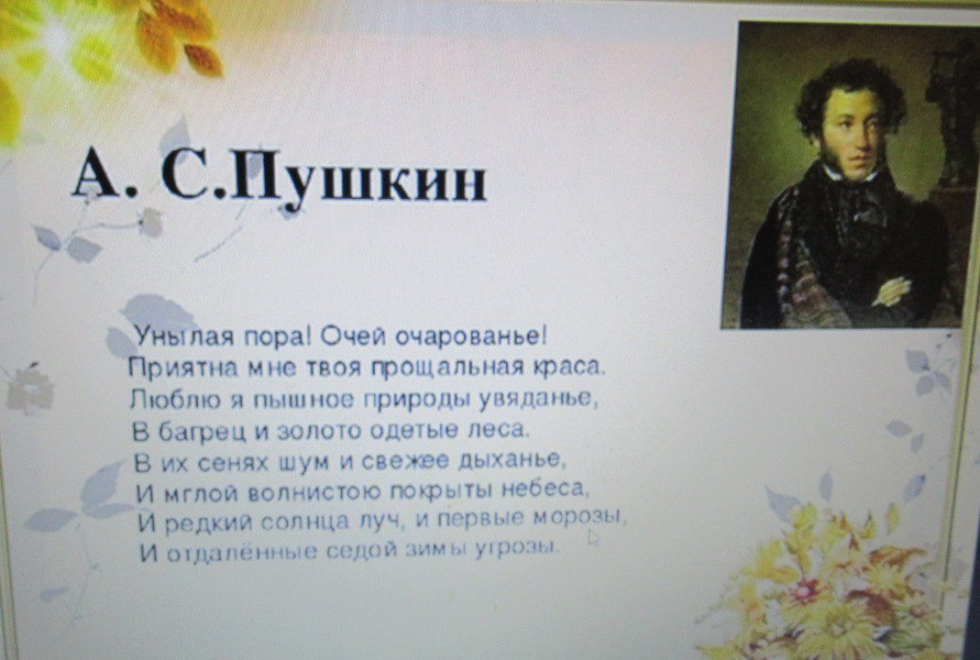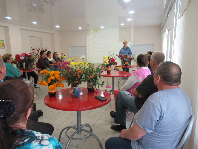 «Чудо болдинской осени» - о Пушкинском Болдино рассказали сотрудники Центральной библиотеки отдыхающим отделения дневного пребывания ГБУ «ЦСОГПВИИ Лысковского района», вспоминая период с 31 августа по 5 декабря 1830 года. Когда Александр Сергеевич вынужден был задержаться в имении Большое Болдино из-за карантина. Самый насыщенный творческий период жизни, подарил множество произведений, в том числе и главу «Евгения Онегина». О героях романа в стихах, о прототипах Татьяны рассказали библиотекари. Создавая осеннее настроение, отдыхающие создавали букеты из осенних цветов.