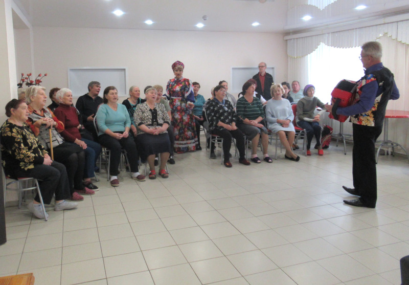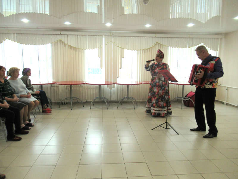 Нам года – не беда! Вокальный дуэт супругов Туманиных Николая и Елены – частые гости у отдыхающих пенсионеров отделения дневного пребывания ГБУ «ЦСОГПВИИ Лысковского м. о.». Приятный мягкий голос Елены Ивановны, виртуозная игра на баяне Николая Вячеславовича, стихотворная подводка к каждому музыкальному номеру, сделали концертную программу «по-домашнему» мягкой, нежной, приятной. Каждый отдыхающий мог спеть часть песни сам, а в конце программы Елена Ивановна организовала частушечный перепляс.