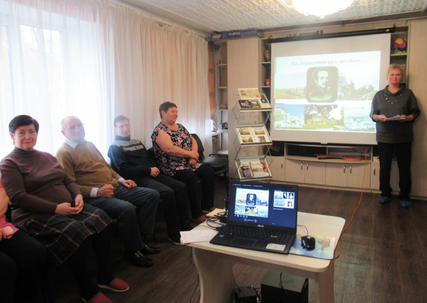 В виртуальное путешествие по лермонтовским местам предложили отправиться сотрудники Центральной библиотеки отдыхающим отделения дневного пребывания ГБУ «ЦСОГПВИИ Лысковского м. о.». Вспоминая жизнь и творчество поэта, присутствующие побывали в значимых местах, где сохраняется память о Лермонтове. Москва – там родился поэт и провел годы учебы. Музей – заповедник «Тарханы» - один из наиболее известных лермонтовских мест – имение бабушки. Санкт-Петербург, где в институте русской литературы открылся зал, посвященный жизни и творчеству Лермонтова. И, конечно, Кавказ Краснодарский край, станица Тамань и Пятигорск, где бережно хранят вещи на экспозициях, посвященных пребыванию поэта на Кавказе.