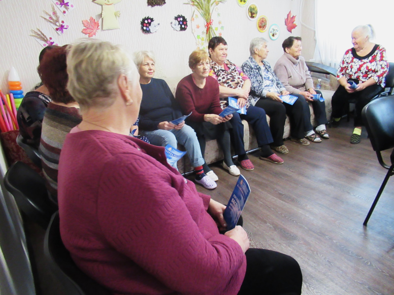 Шарова Нина Михайловна, главный юрконсульт ГКУ НО «Госюрбюро НО», частый гость в отделении дневного пребывания ГБУ «ЦСОГПВИИ Лысковского м. о.». Она провела беседу о защите прав людей пожилого возраста, о возможности получения квалифицированной государственной бесплатной юридической помощи. Каждый отдыхающий получил красочный буклет с подробным описанием услуг, оказываемых ГКУ НО «Госюрбюро НО».
