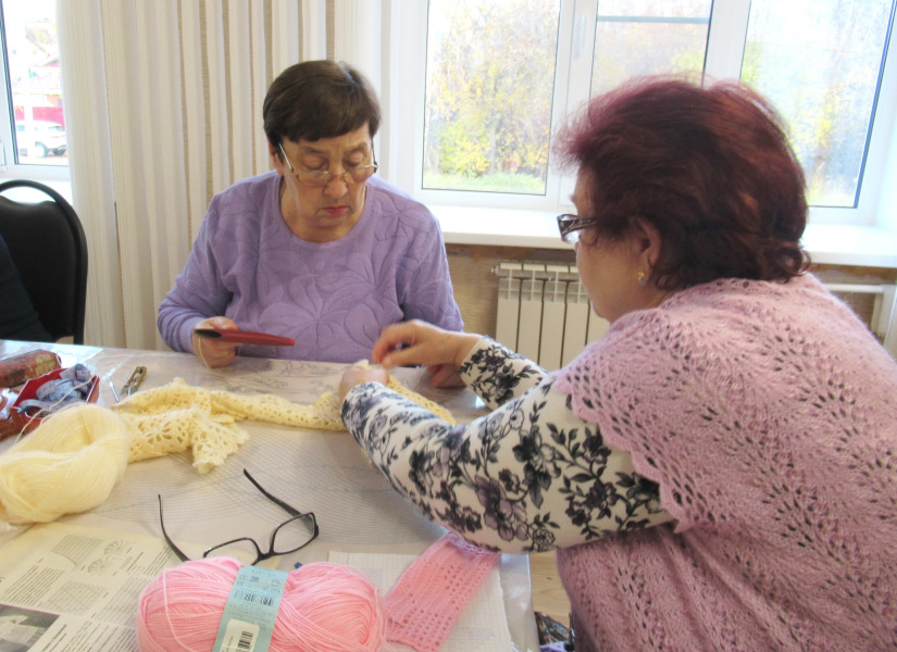 В отделении дневного пребывания ГБУ «ЦСОГПВИИ Лысковского м. о.» организован кружок «Волшебный клубок», где проводятся занятия и обучение вязания крючком и спицами.
