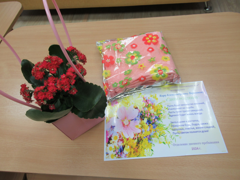 В группе отдыхающих отделения дневного пребывания ГБУ «ЦСОГПВИИ Лысковского м. о.» снова празднуем день рождения. Поздравления принимала Кира Александровна Ларионова, обаятельная, мудрая, добрая. Кира Александровна много десятков лет работала педагогом, воспитала не одно поколение учеников. Активистка по жизни, посещает кружок вязания.