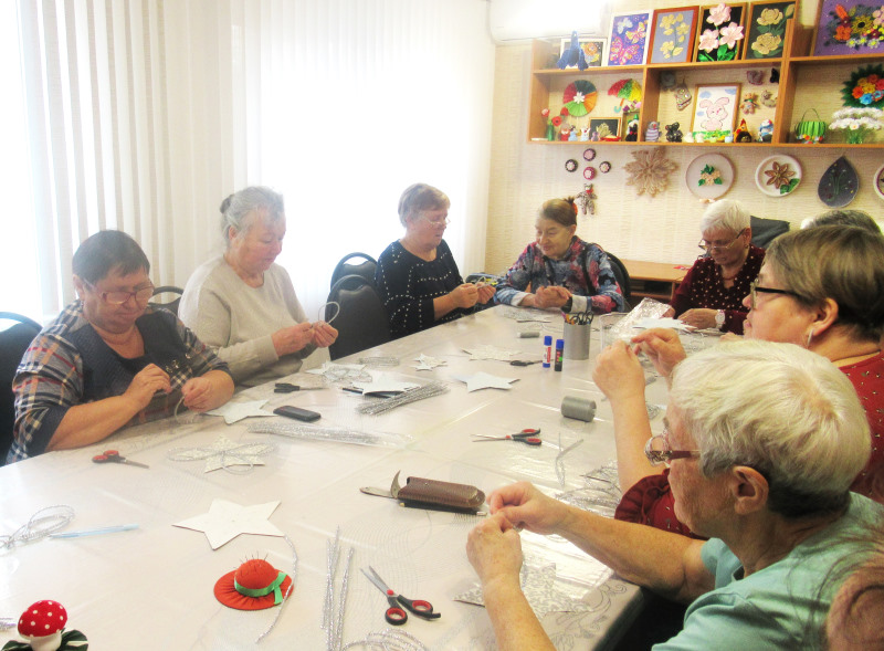 В преддверии зимы и новогодних праздников на занятиях по трудотерапии отдыхающие отделения дневного пребывания ГБУ «ЦСОГПВИИ Лысковского м. о.» изготовили новогодние украшения «Ёлочка» и «Звезда».
