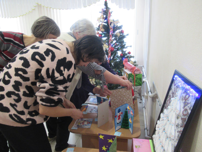 В группе отдыхающих пенсионеров и инвалидов отделения дневного пребывания ГБУ «ЦСОГПВИИ Лысковского м. о.» проходил конкурс «Новогодняя открытка». На конкурс были предоставлены 22 варианта, сделанные руками отдыхающих. Голосование состоялось, скоро имена победителей конкурса будут объявлены.