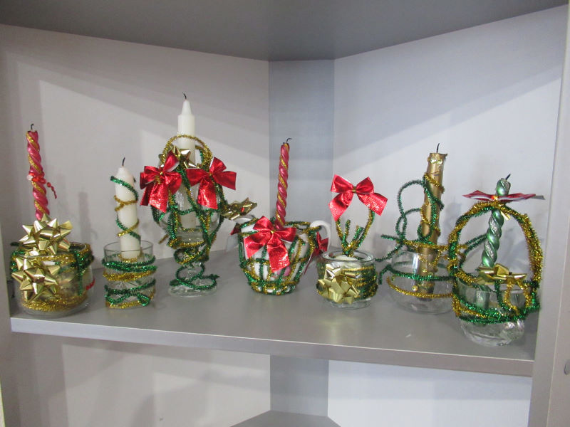 Елена Ивановна Маршева напомнила историю происхождения свечи, традиции применения и помогла украсить подсвечники – атрибуты новогодних праздников.