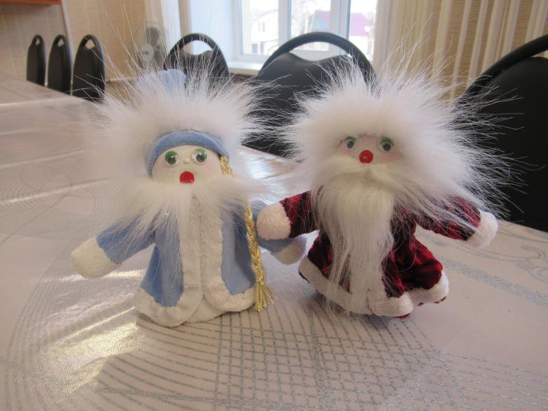 Сердца отдыхающих отделения дневного пребывания ГБУ «ЦСОГПВИИ Лысковского м. о.» ещё наполнены волшебством новогоднего настроения. Поэтому на занятиях по трудотерапии они смастерили поделки «Дед Мороз» и «Снегурочка». Эти сувениры будут радовать каждый Новый Год!