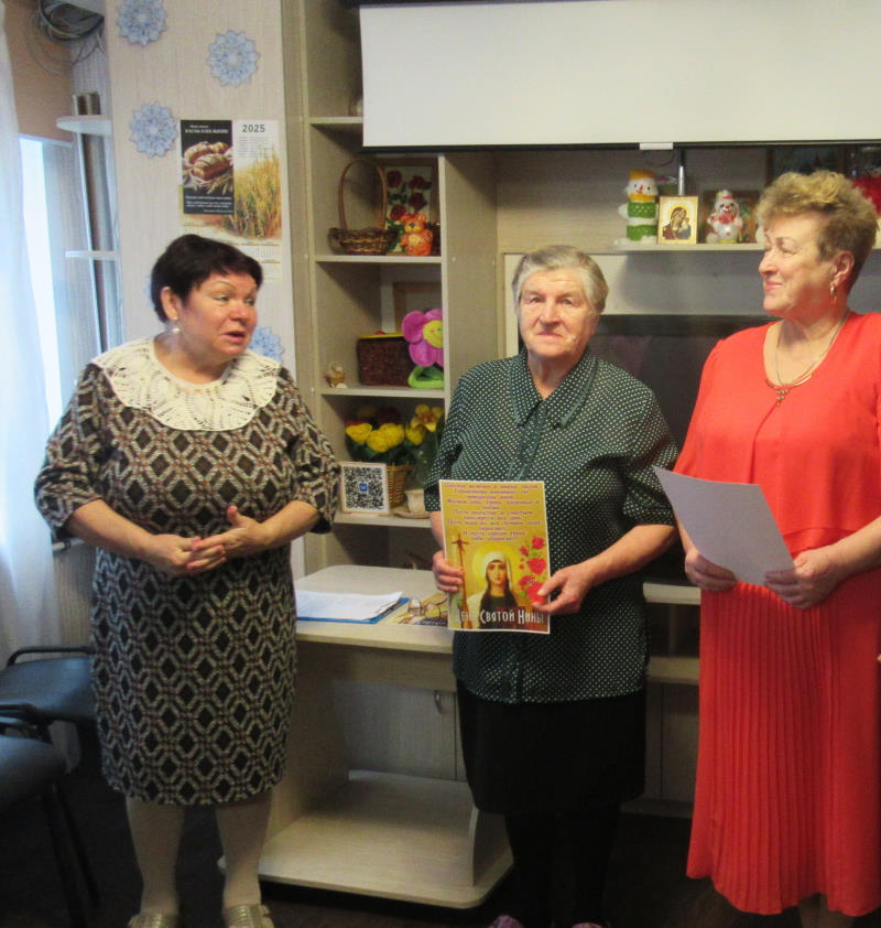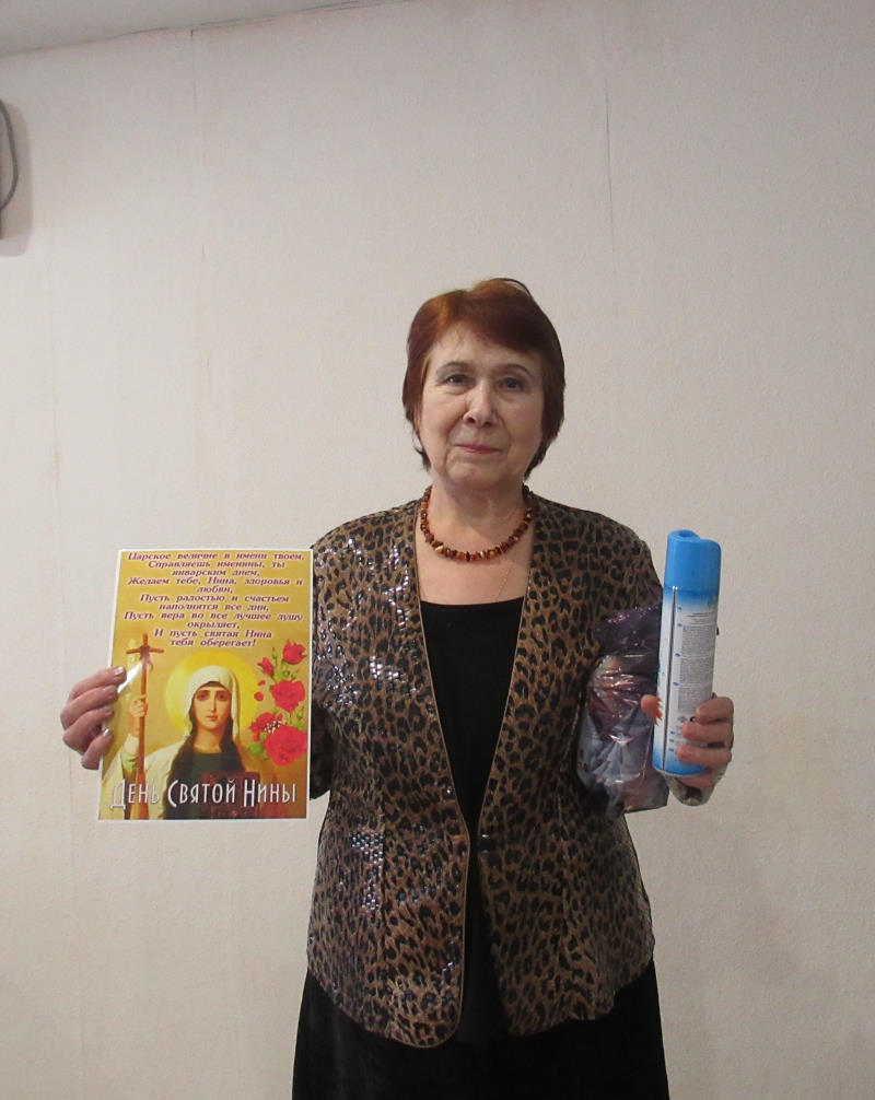 В группе отдыхающих отделения дневного пребывания ГБУ «ЦСОГПВИИ Лысковского м. о.». поздравления сегодня звучали для Нин. В день ангела-покровителя Лупановой Нине, Егорычевой Нине и Лодыгиной Нине вручили поздравительные открытки, сувениры. Надежда Киселёва прочла стихи для именинниц, все пожелали нашим Нинам здоровья, заботы, мира и благополучия. Пасть ваш Ангел и образ святой Нины берегут вас и защищают всю жизнь!