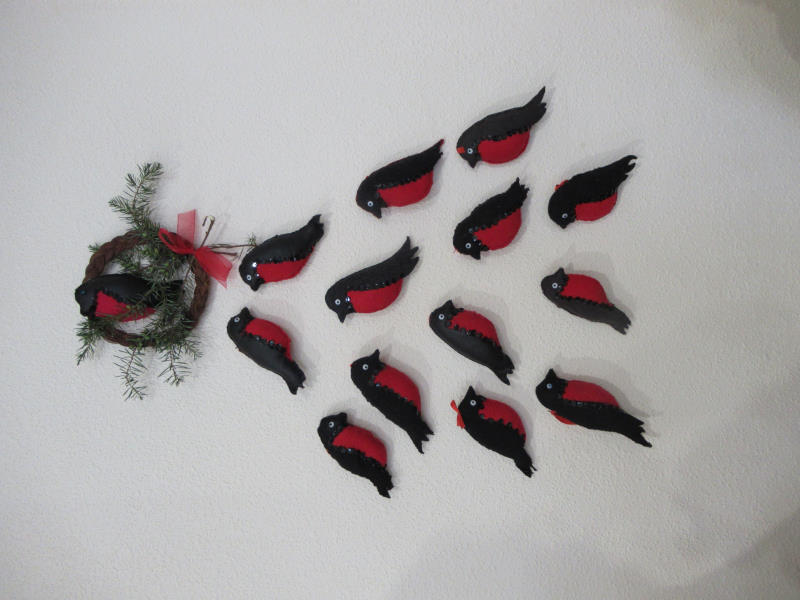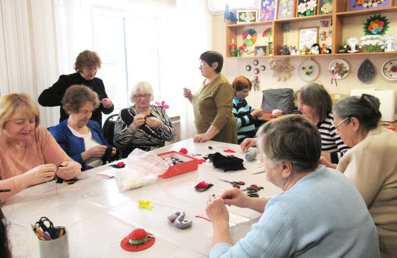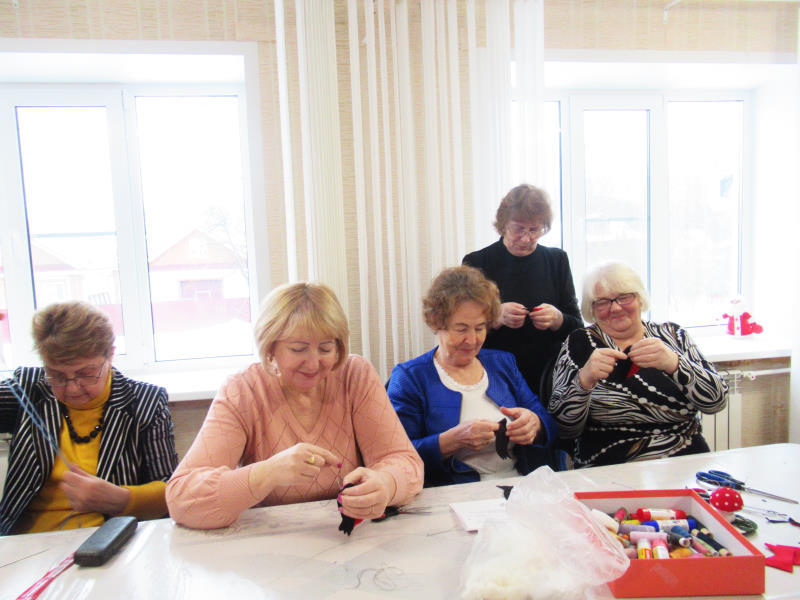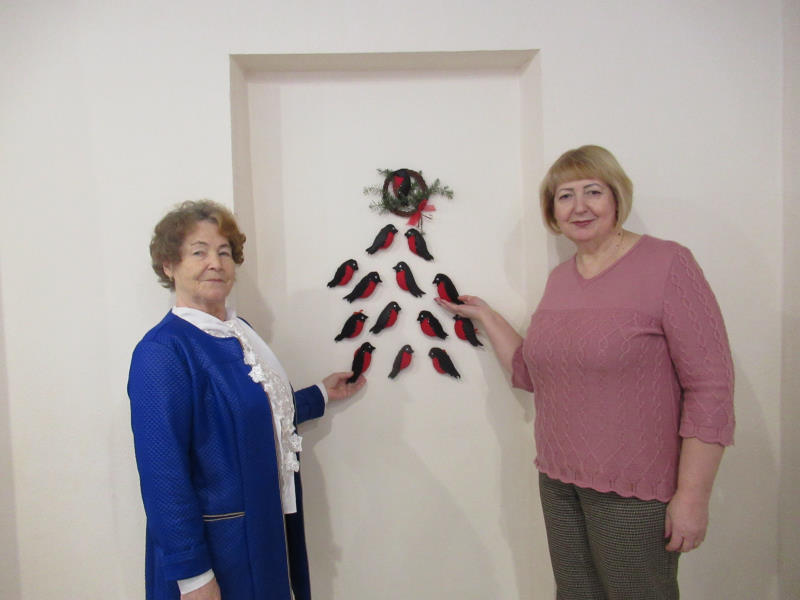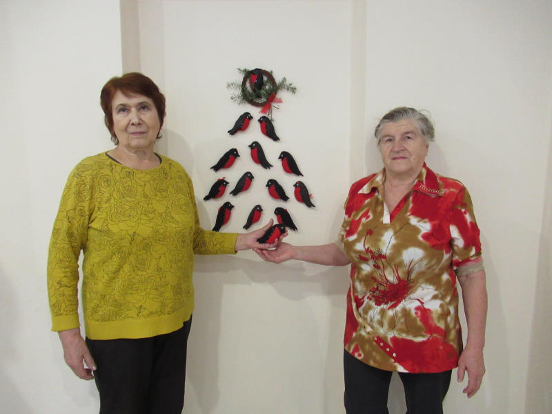 На занятиях по трудотерапии отдыхающие отделения дневного пребывания ГБУ «ЦСОГПВИИ Лысковского м. о.» с удовольствием изготовили зимних птичек снегирей.