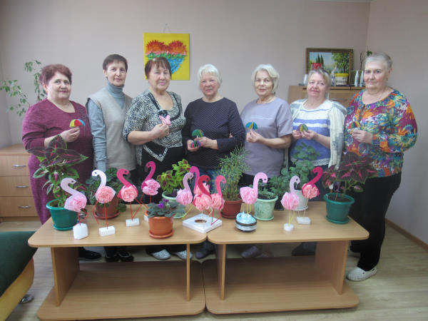 На занятиях трудотерапии отдыхающие отделения дневного пребывания ГБУ «ЦСОГПВИИ Лысковского м. о.» с большим вдохновением занимались изготовлением красивой и необыкновенной птицы «Фламинго». Эти водоплавающие особы спокойные и миролюбивые, но при этом осторожные.