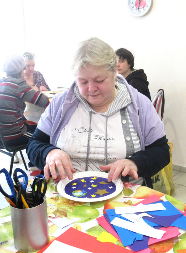 В преддверии Дня космонавтики на занятиях трудотерапии отдыхающие отделения дневного пребывания ГБУ “ЦСОГПВИИ Лысковского м. о.” решили погрузиться в захватывающий мир космоса.