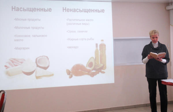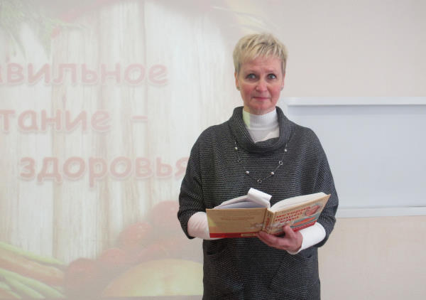 Е. И. Маршева рассказала о культуре питания и о влиянии пищевых привычек на здоровье, зачитали советы известных диетологов о пользе овощей и фруктов.
