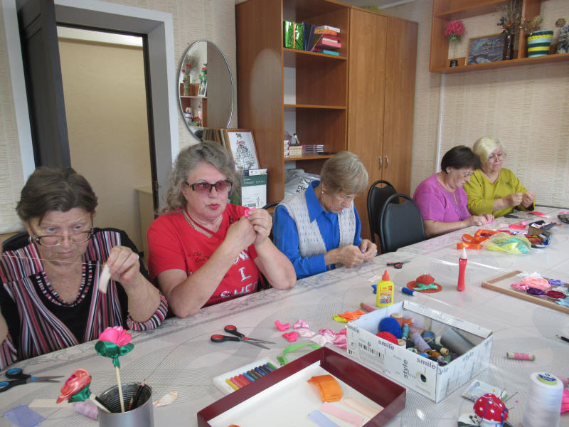 В кабинете трудотерапии ГБУ «ЦСОГПВИИ Лысковского м. о.» прошло занятие по изготовлению роз из атласных ленточек. Инструктор по трудотерапии Т.В. Батракова занятие начала с рассказа как сделать цветочек - розу, что для этого необходимо и с чего начинать. Далее получатели социальных услуг приступили к самостоятельной деятельности. В результате получились красивые панорамы из цветов.