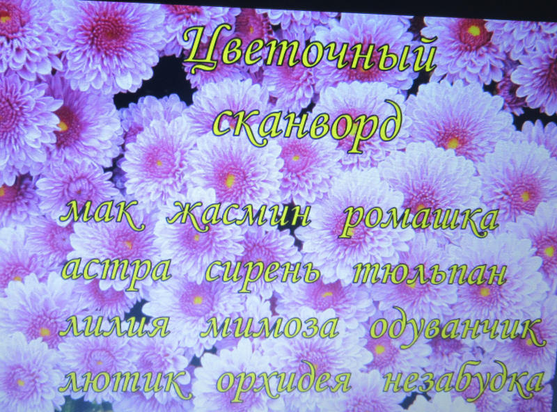 Многие народы, любящие цветы, издавна проводили в их честь праздники. Вот и сегодня получился праздник цветов. Участники принесли множество садовых цветов, из которых две команды составили оригинальные букеты. Затем отдыхающие соревновались в конкурсах: выбери ответ, несуразица, язык цветов. Заходили в цветочную аптеку, вспоминали песни о цветах и разгадывали цветочный сканворд.
