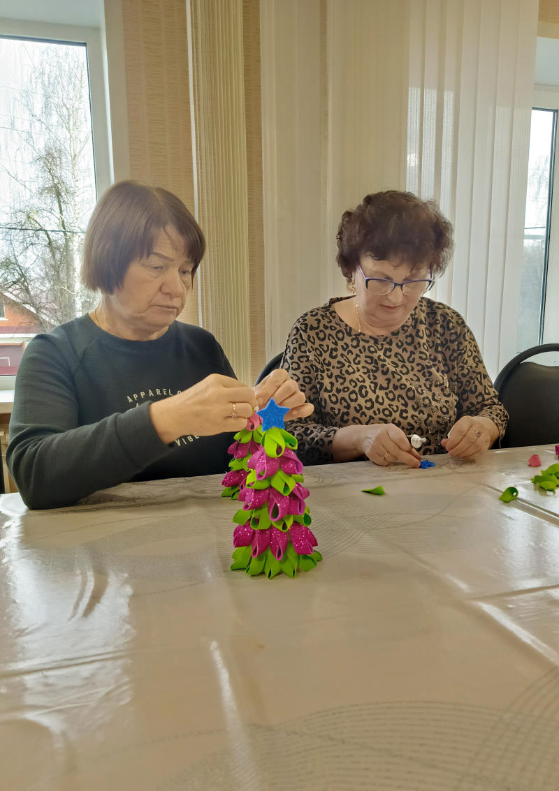 В отделении дневного пребывания ГБУ «ЦСОГПВИИ Лысковского м.о.» на занятии трудотерапии, отдыхающие с энтузиазмом, взялись за изготовление новогодних ёлочек. В результате их стараний появились замечательные сувениры, в которые каждый участник вложил частичку своей души, тепла и море вдохновения!