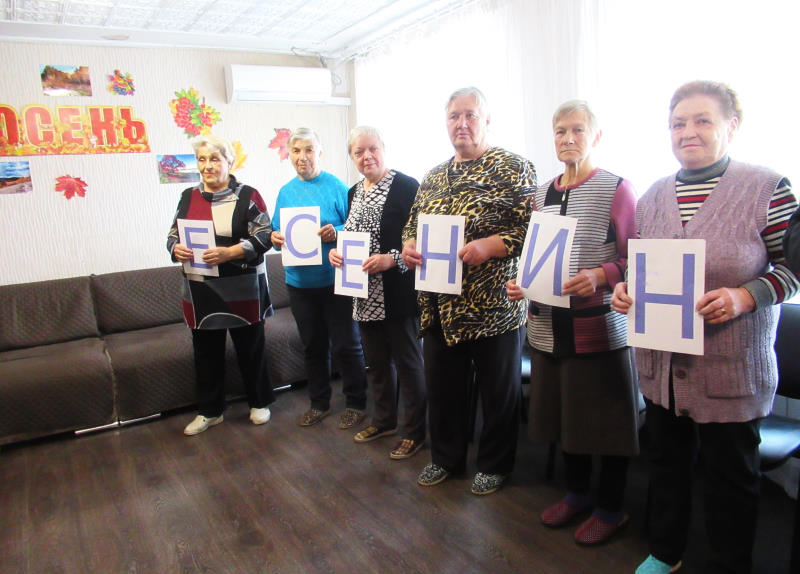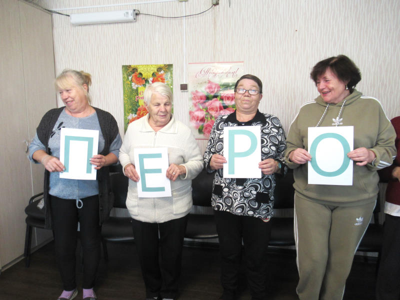 Есть много разных игровых программ, среди них есть и игры на движение. Берётся одно большое слово, и из него образуем новые слова, путём перестановки букв местами. Отдыхающие пенсионеры отделения дневного пребывания, получив карточки с буквами, из слова «Пенсионер» составляли новые слова. А их в результате получилось 20!