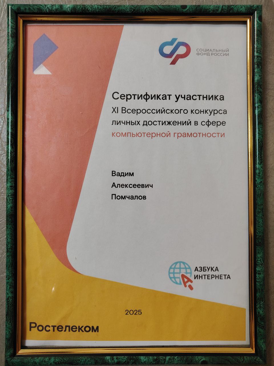 В 2025 году в России проводится XI всероссийский конкурс по компьютерной грамотности «Спасибо интернету», учрежденный ПАО «Ростелеком» и Социальным фондом России. В этом году ввели специальную номинацию для преподавателей, для тех, кто обучает компьютерной грамотности старшее поколение. От нашей организации в данном конкурсе принял участие преподаватель курса «Компьютерная грамотность» Помчалов Вадим Алексеевич