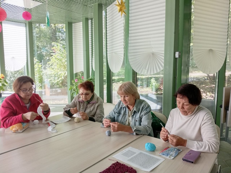 Парк Швейцария. В Центре *Долголетие по-нижегородски* для граждан старшего поколения, творческой мастерской Галины Косыевой *Вязание крючком* проведено заключительное занятие по теме *Кружевной воротник Элегия*.