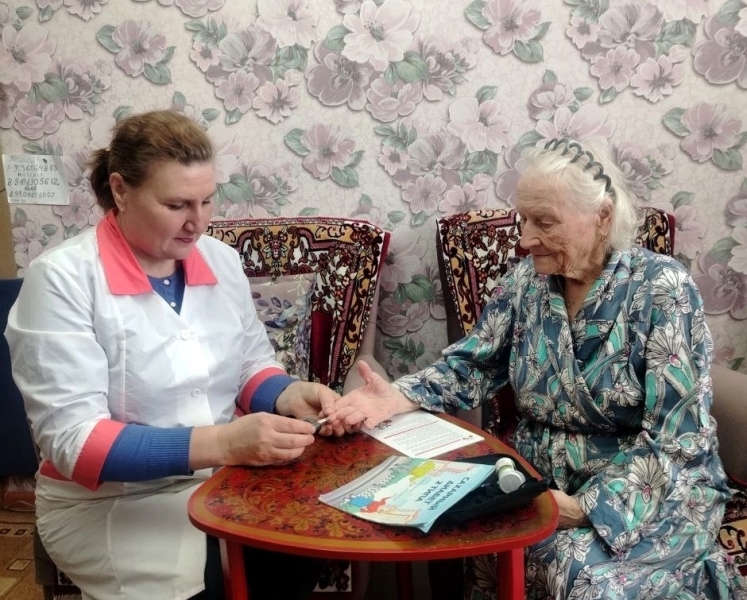 Медицинские сестры отделений социального обслуживания на дому проводят беседы со своими подопечными о профилактике сахарного диабета. Рассказывают о правильном питании при этом заболевании, полезных физических упражнениях, а также о том, как контролировать уровень сахара в крови.