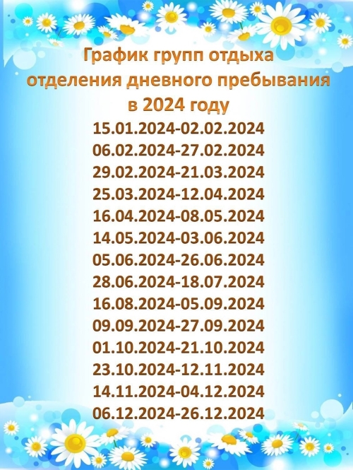 Приглашаем Всех отдохнуть и укрепить здоровье вместе с нами и публикуем график смен на весь год.