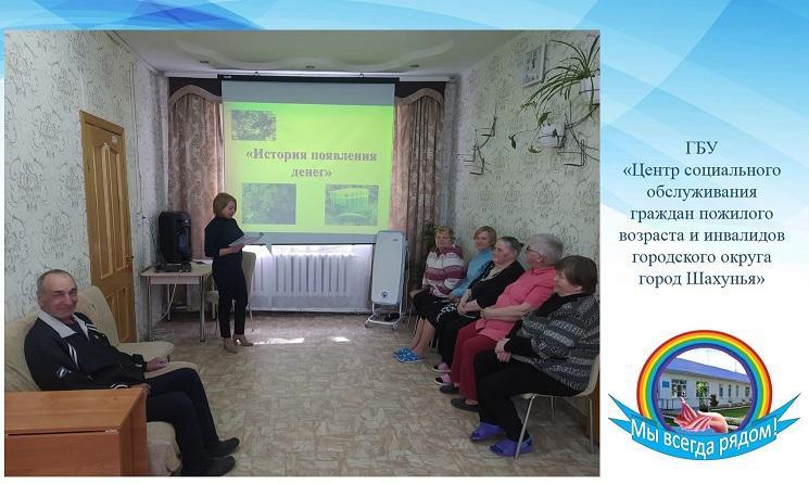 С отдыхающими в отделении дневного пребывания юрисконсультом проведено занятие на тему «История денег».