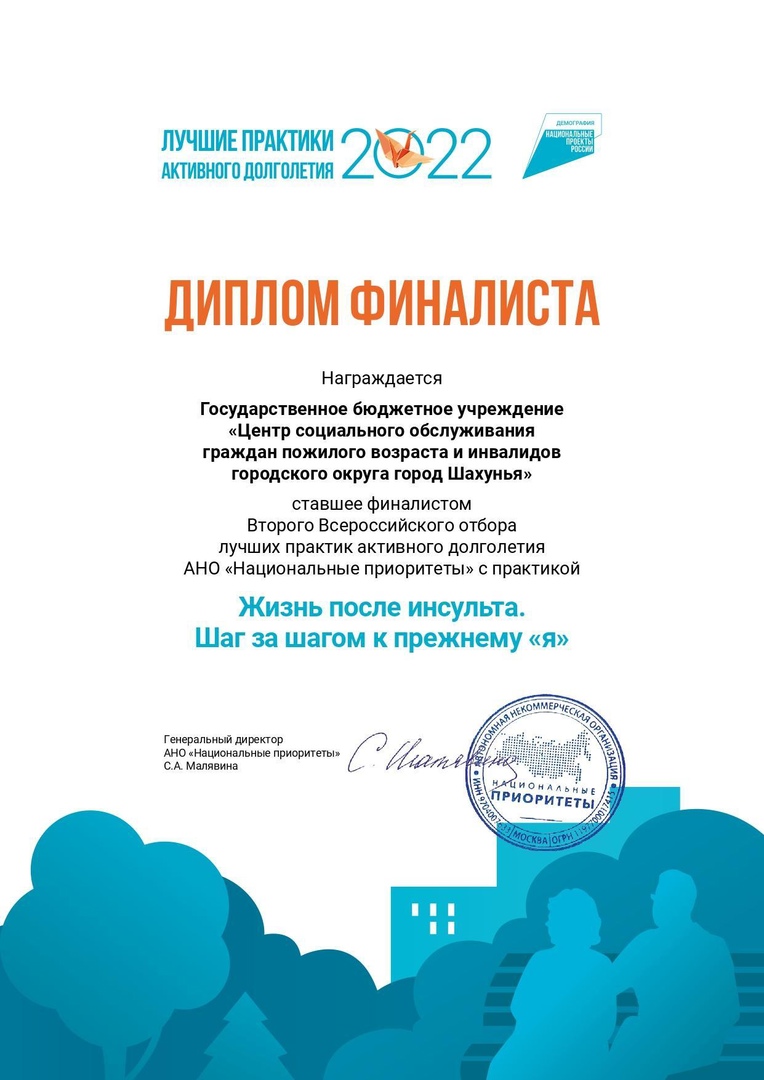 Рады поделиться с Вами замечательной новостью - Сборник лучших практик активного долголетия 2022 года опубликован! Наша практика "Жизнь после инсульта. Шаг за шагом к прежнему "Я" вошла в число 113 лучших практик страны!