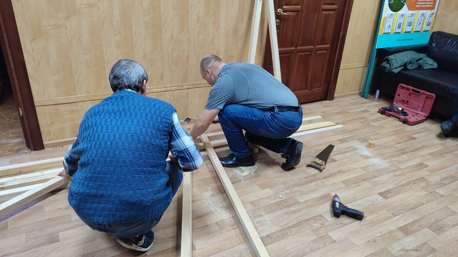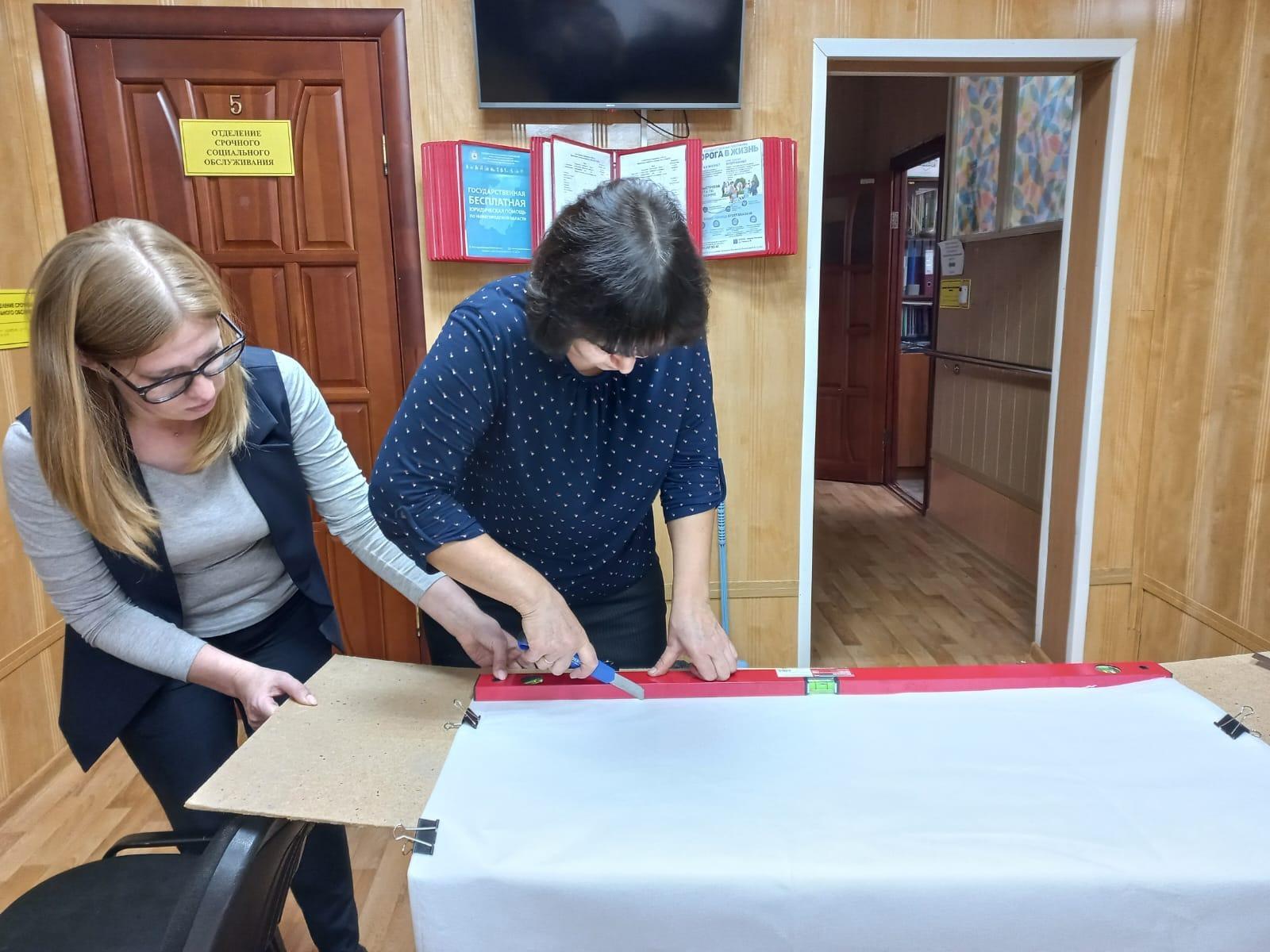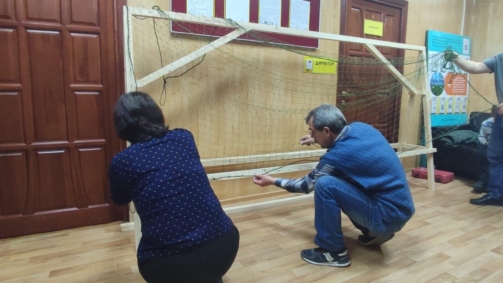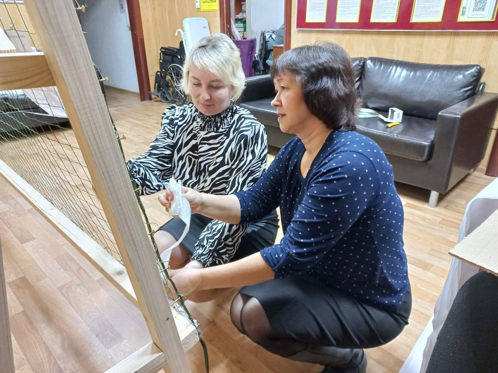 Сотрудники Центра принимают участие в плетении маскировочных сетей.
