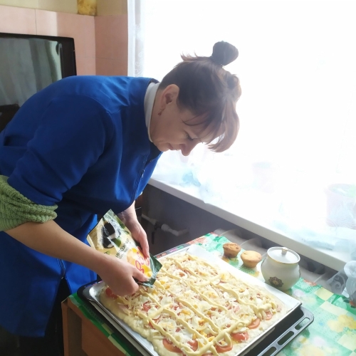В этот день наши обслуживаемые вместе с социальными работниками тоже приготовили пиццу по своим любимым рецептам