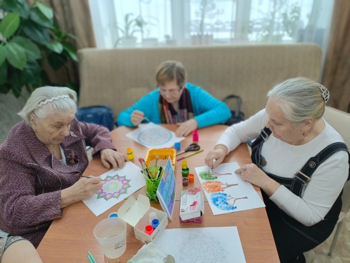 Отдыхающие в отделении дневного пребывания с удовольствием осваивают новые направления творческой деятельности: изготавливают закладки и подарочные конверты в технике оригами, а также занимаются изотерапией