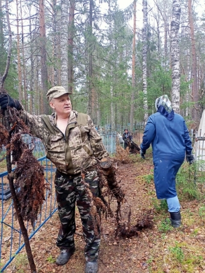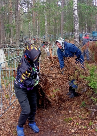 Так, коллеги из отделения Специализированный жилой дом для граждан пожилого возраста и инвалидов, расположенного в посёлке Вахтан, приняли участие в общепоселковом субботнике по уборке территории кладбища