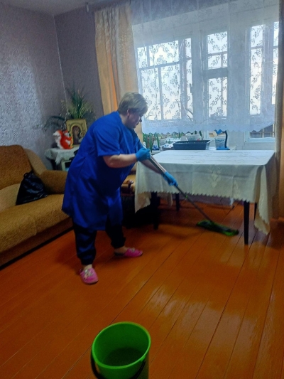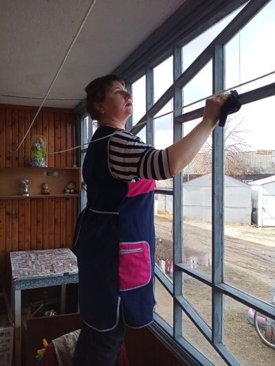 До светлого праздника Пасхи остается совсем немного времени. Социальные работники помогают своим обслуживаемым справится с домашними хлопотами : моют окна, вешают шторы, делают генеральную уборку.