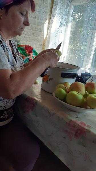 На фото: соц.работник Тулюсева Татьяна с обслуживаемым Скляренко Владимиром Алексеевичем собирают ягоды и заготавливают компот. Соц.работник Краснова Людмила занимается приготовлением компота из яблок для Смирновой Марии Григорьевны. Соц.работник Финагина Анна с получателем соц.услуг Балашовой Раисой Ивановной заготавливают компот из ягод.