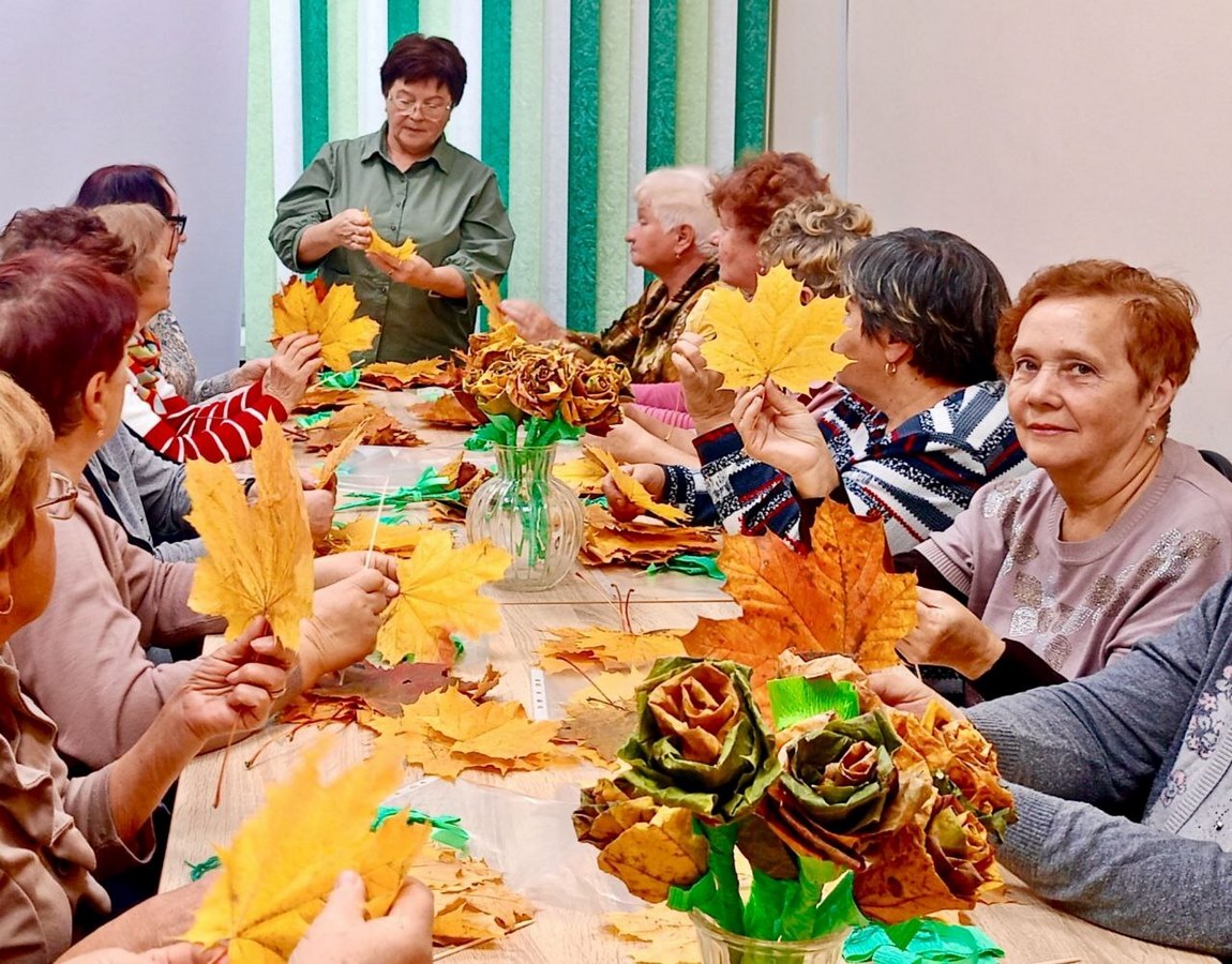 В рамках месячника пожилого человека в нашем Центре состоялся увлекательный мастер-класс по созданию роз из осенних листьев. Мероприятие прошло в тёплой и творческой атмосфере, участники с большим удовольствием погрузились в мир рукоделия, создавая яркие и уникальные цветы!