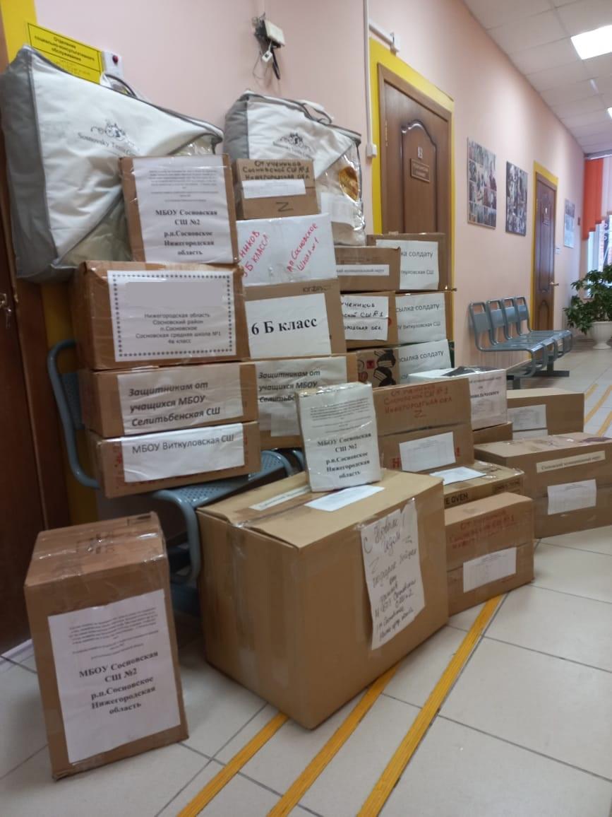 Чтобы помочь нашим защитникам, участвующим в Специальной Военной операции, ученики Сосновской школы № 1, школы № 2, Виткуловской, Селитьбенской школ и «Детско-юношеский центр» приняли активное участие в сборе гуманитарной помощи. Средства личной гигиены, медикаменты, продукты питания, и самое душевное – письма со словами поддержки, отправились нашим землякам.
