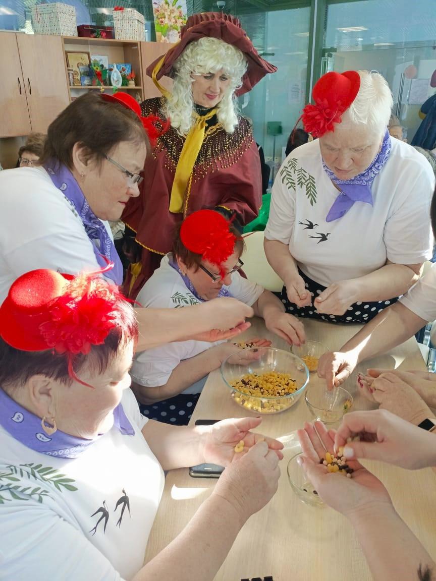 С утра у дверей Центра долголетия было оживленно. У входа гостей встречала сама «Шляпная королева», приглашая их в свое королевство с пожеланиями хорошего настроения. Входным билетом служил головной убор, который женщины с удовольствием надевали на себя.