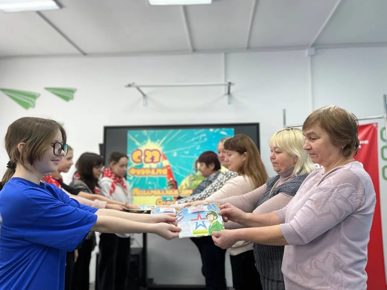 🎖️ В преддверии Дня защитника Отечества активисты школьного отряда «Движение Первых» Буреполомской школы вместе с сотрудниками ГБУ «Центр социального обслуживания населения Тоншаевского муниципального округа» подготовили поздравительные открытки.