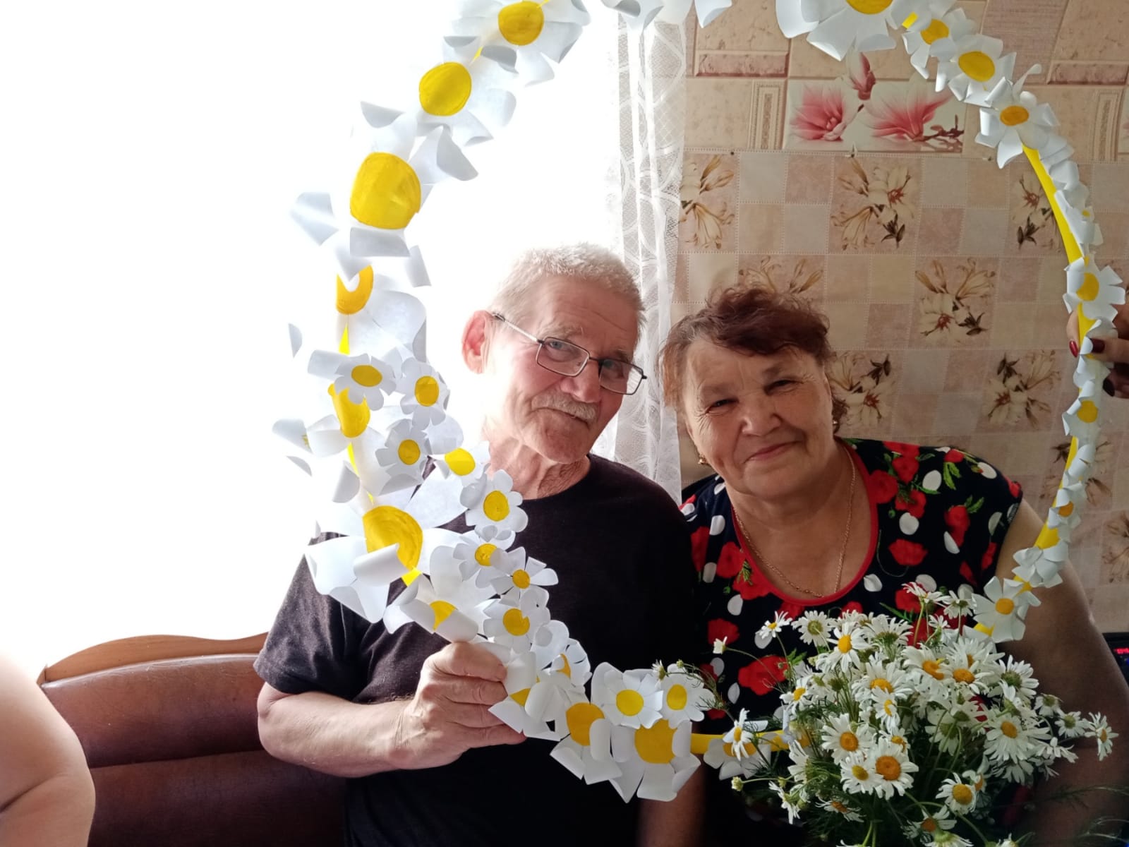 В этот день социальные работники поведали обслуживаемым историю возникновения праздника, прочитали красивые стихи о семье, любви и верности и конечно же, подарили супружеским парам букеты белых ромашек, так как символом Дня семьи выбрана ромашка - полевой цветок, самый распространённый в это время года в России, символизирующий чистоту и мечты о любви и верности.