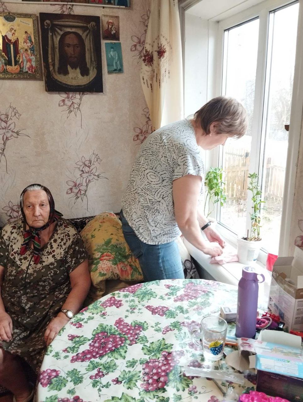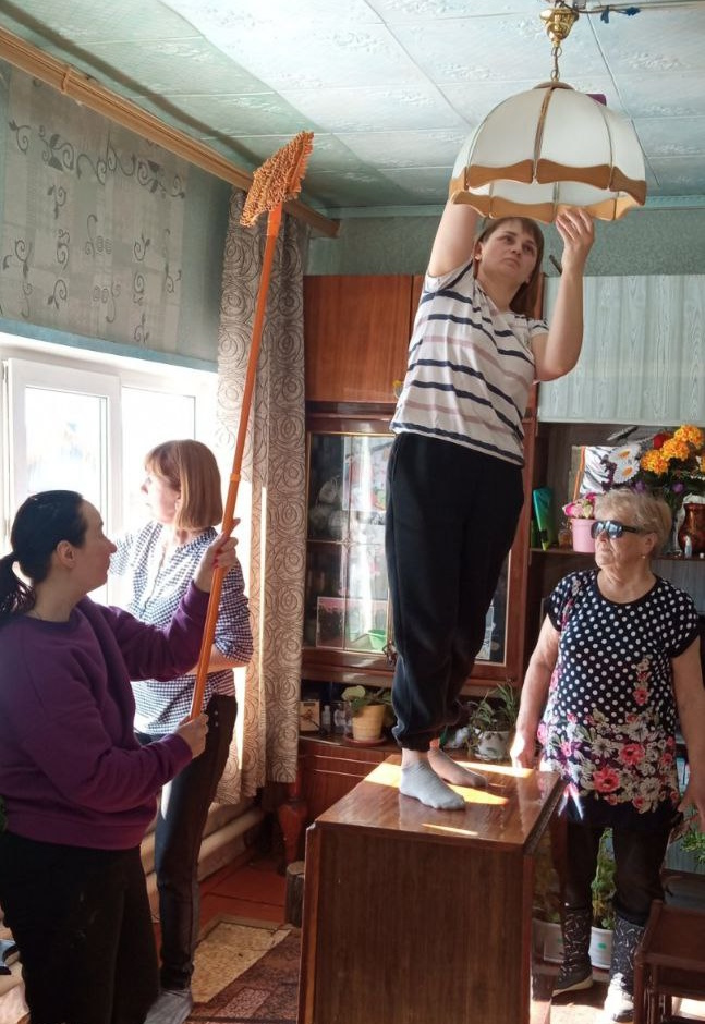 Социальные работники «ГБУ КЦСОН Тоншаевского муниципального округа» помогают получателям социальных услуг в уборке жилых помещений к празднику. Они активно принимают участие в трудоемкой работе: моют окна, потолки, полы, вешают шторы.