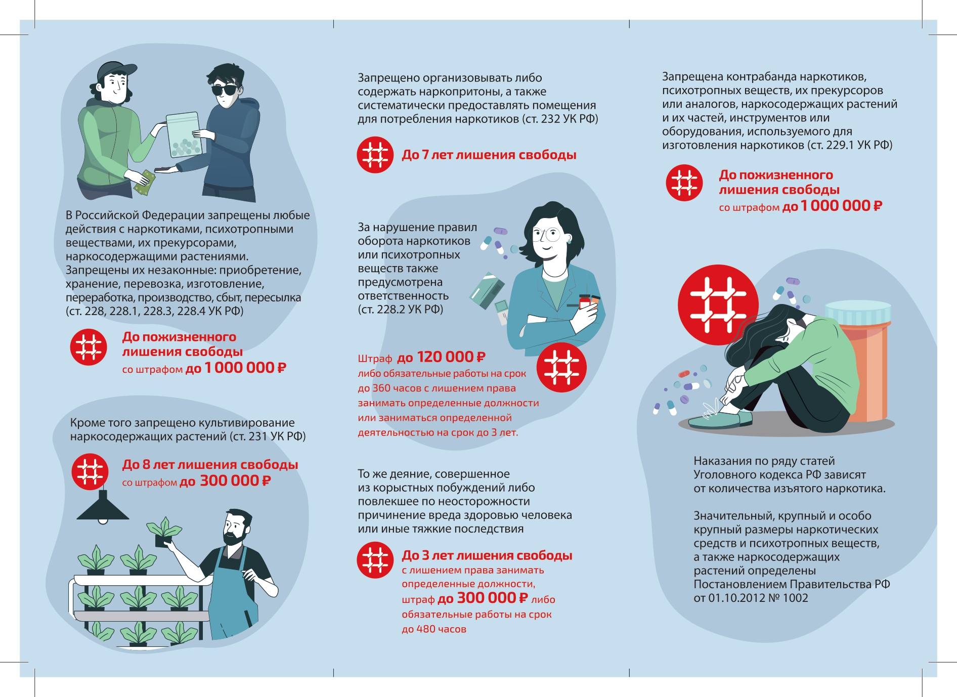 Предлагаем вашему вниманию информационный буклет об уголовной ответственности за преступления, связанные с незаконным оборотом наркотиков, разработанный главным управлением по контролю за оборотом наркотиков МВД России.