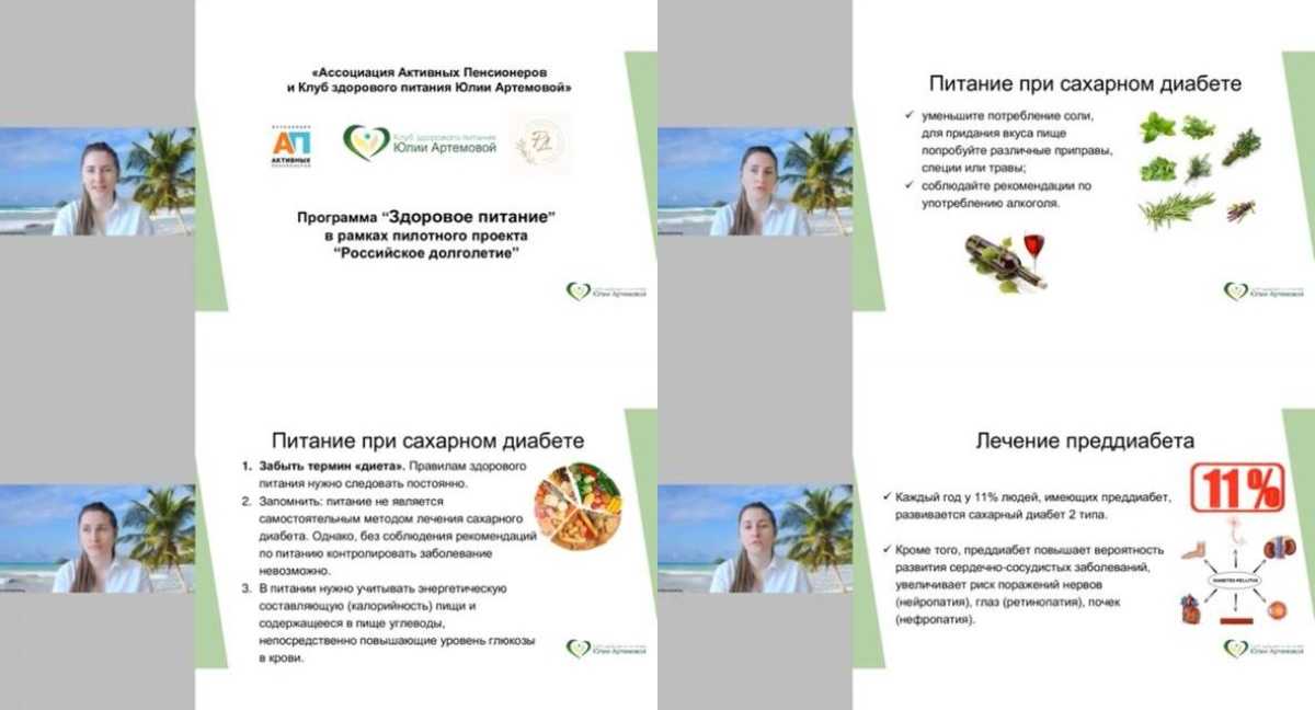 Темой вебинара стало "Здоровое питание" в рамках пилотного проекта "Российское долголетие".
